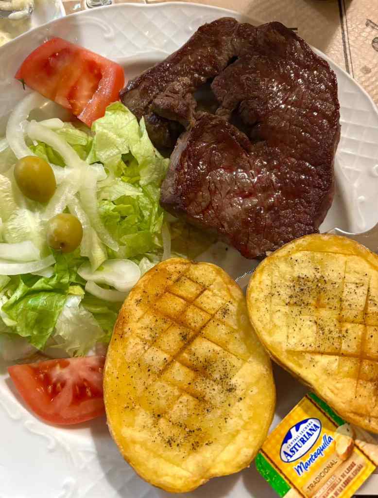 There’s no set selection of sides. You’ll be prompted to pick your potato of choice upon ordering – fries, patatas a la plancha or a jacket potato…but it’s not like any other jacket potato you’ll have had before. Sliced in half, crispy all the way around the outside and fluffy in the middle. Dripping in butter with a generous sprinkle of salt. My mouth waters just writing about it.