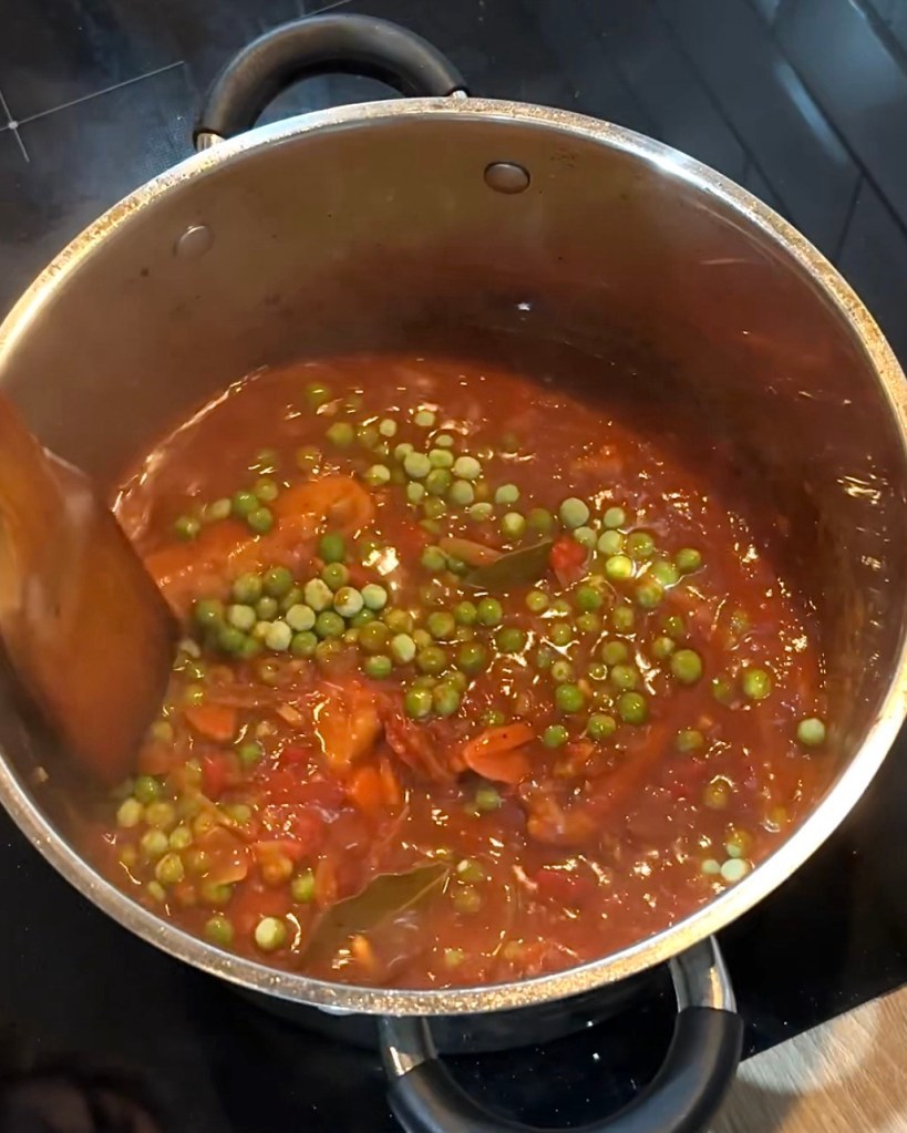 7. Optional – stir in the garden peas for the final 5 minutes of cooking.