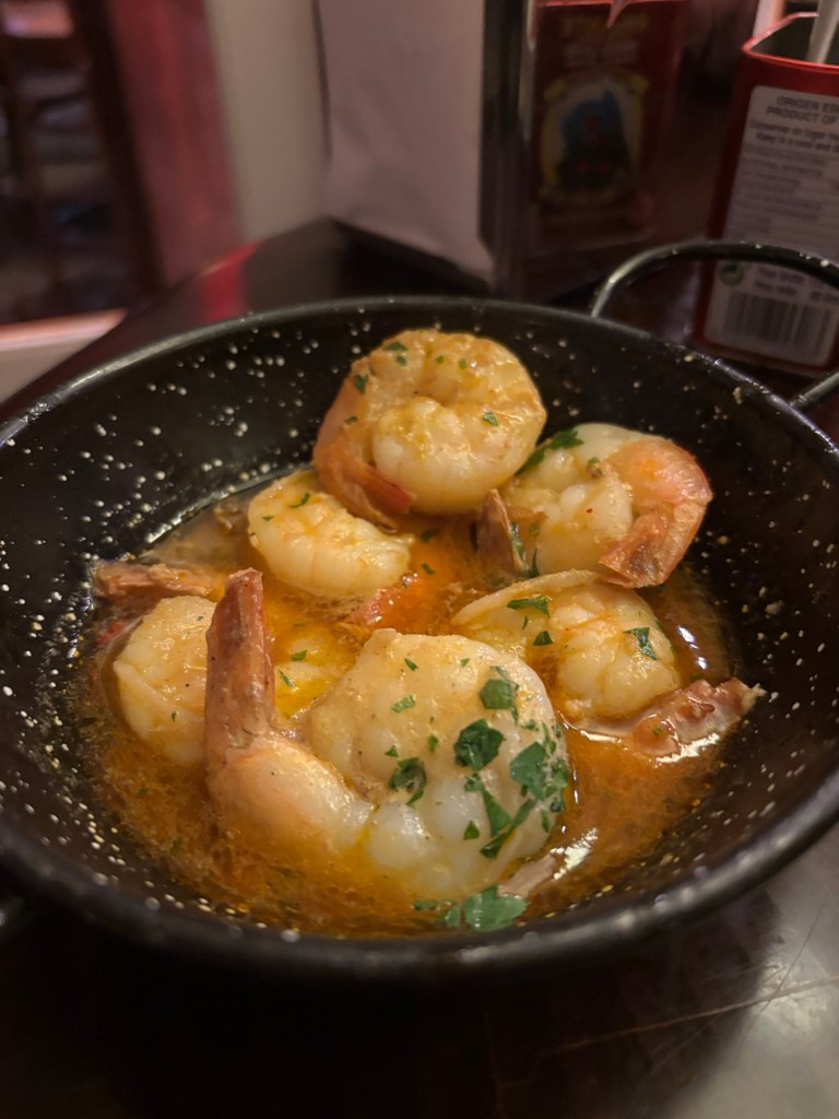 Gambas Pil Pil (chilli and garlic tiger prawns)