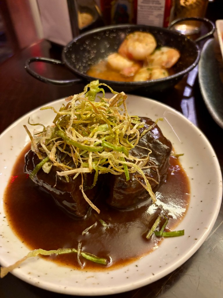 I was ready to ask for a knife to accompany my tapas fork as I tucked into these, but quickly learnt it wasn’t necessary. With one gentle nudge of the fork, the meat fell apart and into that deliciously rich red wine gravy. The crispy leeks were a nice addition too and provided a lovely contrast in texture to what otherwise could’ve been quite a soft, rich plate.